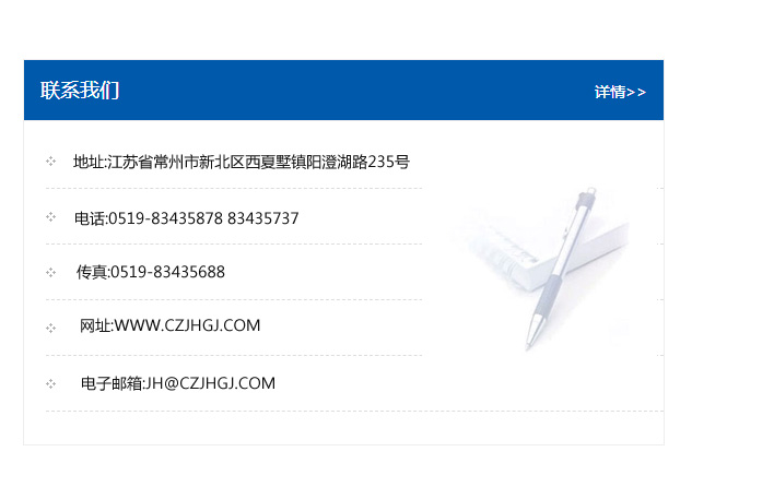 地址:常州市新北區友邦商務大廈1幢16、17層  電話:0519-85101652  傳真:0519-85112595  郵編:213022  網址:www_cz-jiayue_cn.polarishk.com  郵箱:xiajifengaa@163.com
